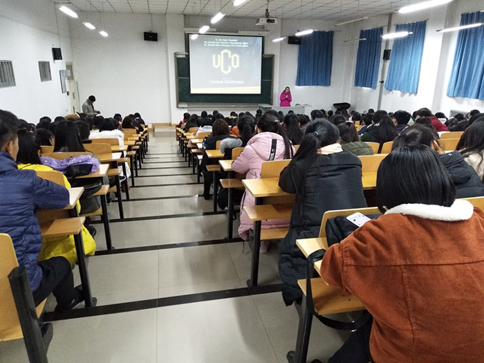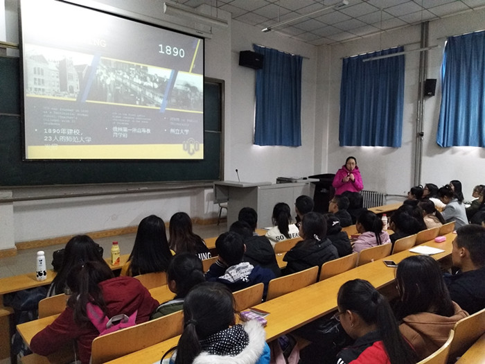 赵老师首先向大家介绍了UCO所在的地理位置和当地的自然风光、风土人情。随后,对UCO的办学条件、学科优势、与世界其他高校和教育主管部门开展的交流合作等进行了详细的介绍。根据合作双方达成的共识,UCO将面向合作院校开展“3+1+1”双学位项目。我院学生在符合条件的情况下,大四可申请赴UCO学习,修完最低30个学分,我院实行学分对接。本科毕业后即可获得陇桥学院与UCO双学士学位,并免语言考试申请攻读UCO硕士学位。