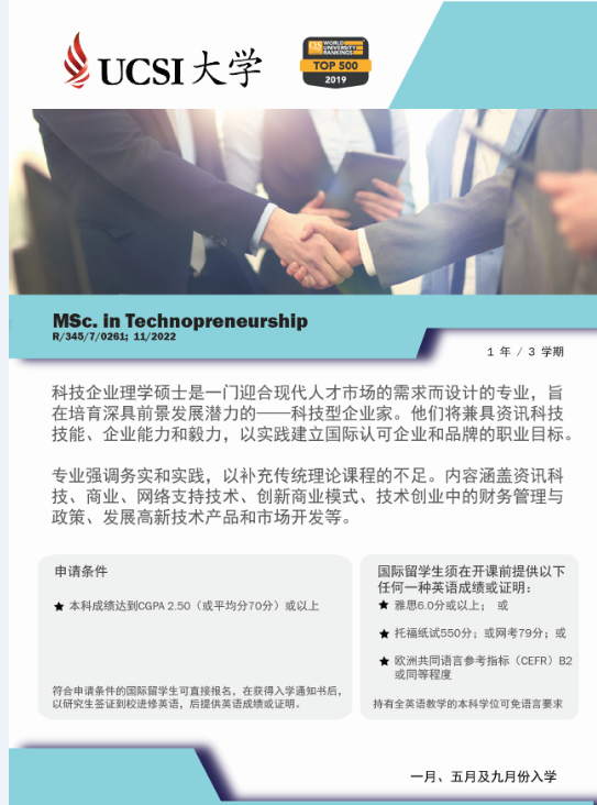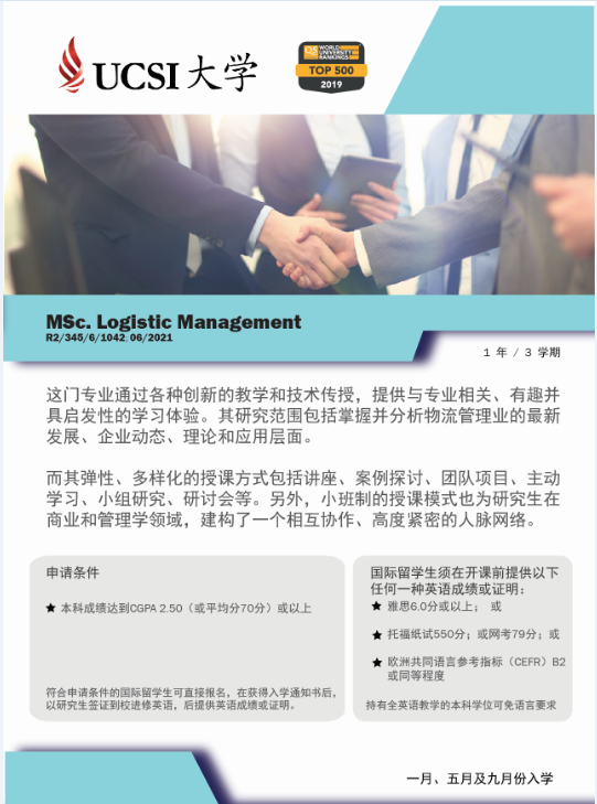 兰州财经大学陇桥学院大四毕业生,成绩合格且获得我院颁发的毕业证书,可推荐至UCSI攻读硕士学位。