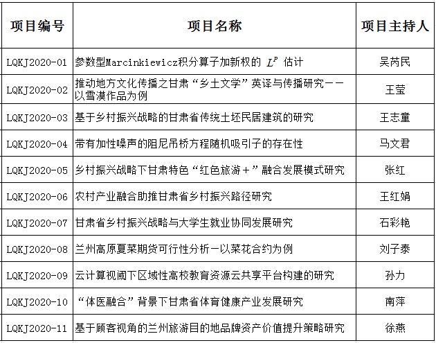 2020年陇桥学院青年教师科研基金项目立项名单