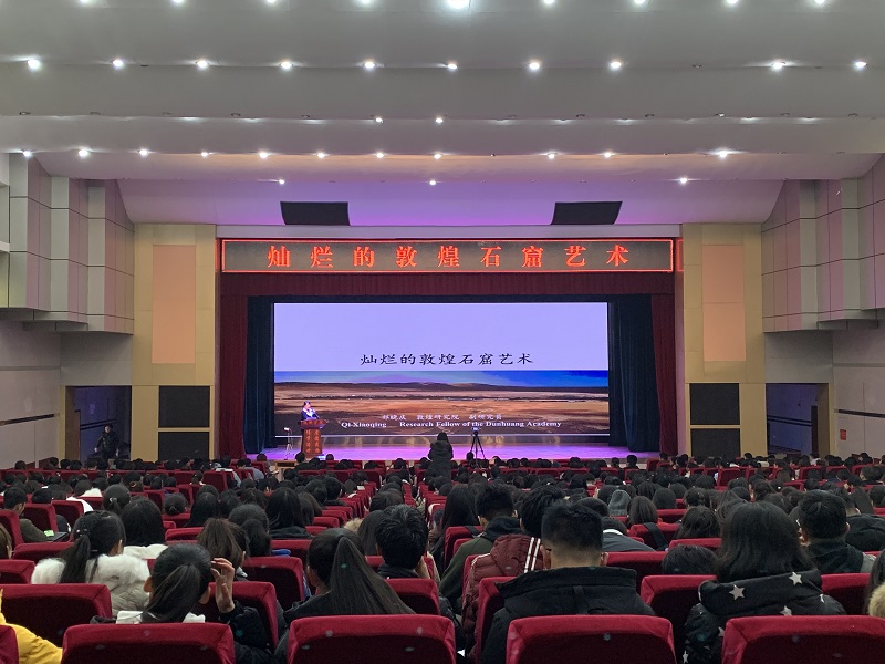 为传播中华优秀传统文化和甘肃特色文化,讲好甘肃故事,传播甘肃声音,展示甘肃形象,创新高校思想政治教育机制,加强校园文化建设,12月5日下午,学院邀请敦煌研究院副研究员祁晓庆博士面向全院师生作“灿烂的敦煌石窟艺术”专题讲座。本次活动由学院党委书记王新兰主持。