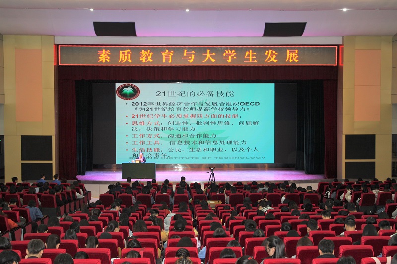庞老师从兴趣、素质与职业发展引入,结合自己的职业发展道路带动学生对大学四年的学习规划和未来职业生涯发展规划进行思考,指出了理想信念、道德修养、终生学习能力等综合素质教育对大学生未来发展的重要意义。随后从“素质教育是什么”、“素质教育为什么”、“素质教育如何做”三个方面对素质教育的内涵做了解读,以美国部分知名高校的通识教育课程体系、北京理工大学书院制为例对素质教育的实施路径进行阐释,强调了阅读经典、课外讲座、社团活动等健康有益的课外素质文化活动和社会实践对大学生成长的意义所在。