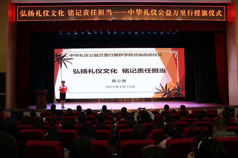 2019年3月15日,中国职教学会人文素质教育委员会副会长、礼仪文化教育中心主任蔡少惠校长在学术报告厅为我院学生做“弘扬礼仪文化,铭记责任担当”主题讲座。