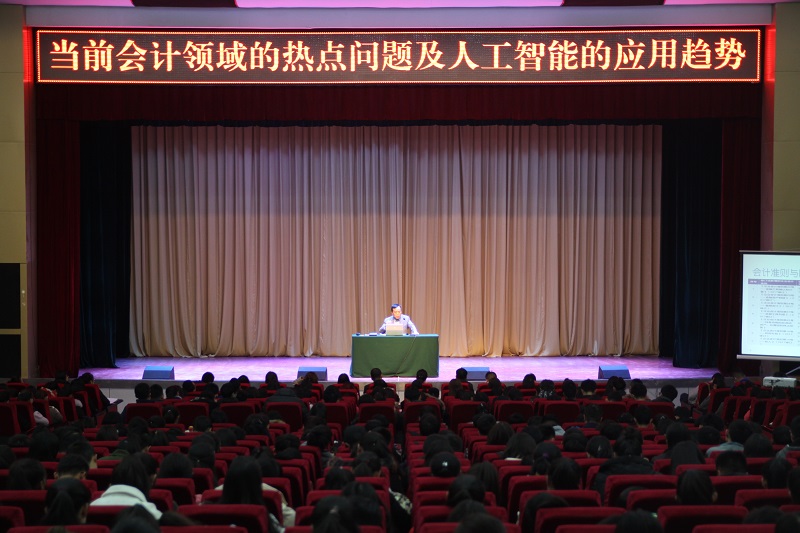 讲座伊始,李宗义所长就当前会计行业发展现状给同学们做了简要介绍,要求同学们在理论学习的同时加强实践探索,充分利用时间提升自己的专业技能。接着,李宗义所长从会计准则与国际会计准则持续趋同、管理会计掀起社会热潮、对会计的监管处罚力度持续加强等三个方面热点问题向现场的师生们进行了讲解与分析。最后,李宗义所长以人工智能在财务工作中的应用为题分析了人工智能在未来会计领域的发展前景,他表示人工智能将取代会计领域中一些简单重复的工作,要求同学们更深层次地认识到会计行业的发展趋势和重大变革。本次专题讲座在同学们热烈的掌声中落下帷幕。