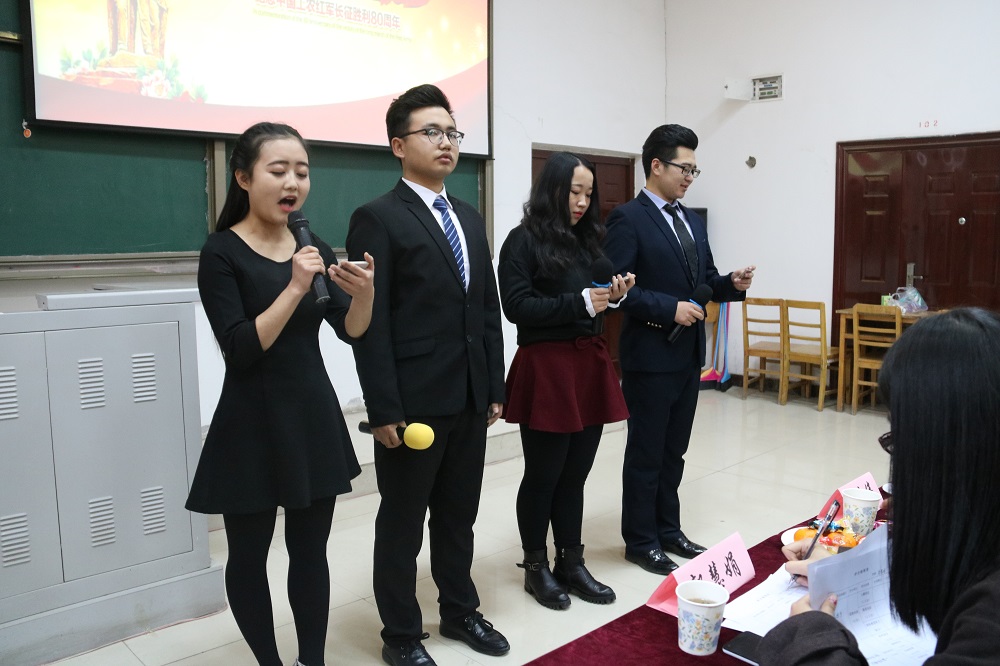 2016年12月11日,大学生科技管理学会纪念长征胜利80周年演讲比赛暨大学生科技管理学会三周年庆典在学术报告厅101教室成功举行。出席本次活动的评委和嘉宾有科研与学术交流处处长徐运敏老师、教务处王永伟老师、党委工作部王林老师、科研与学术交流处李鹏程老师、郭慧娟老师,后勤处何健德老师。院团委有关部门、学院部分学生组织的负责人及大学生科技管理学会全体干部、干事共计300余人一同参加了庆典活动。