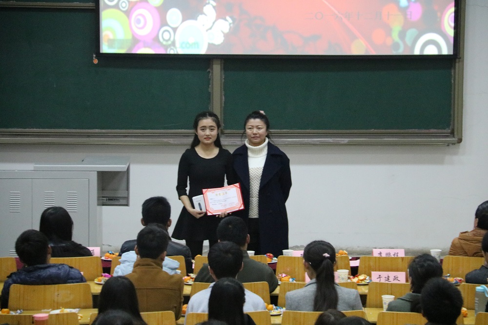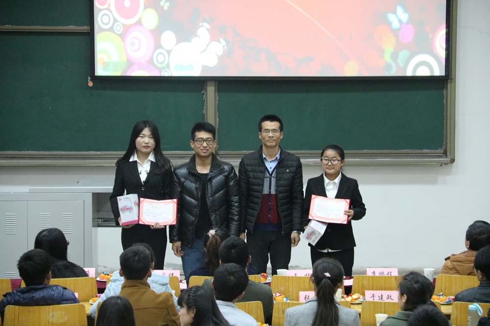 随后,大学生科技管理学会三周年庆典文艺联欢活动正式开始,由大学生科技管理学会同学们自编自演的15个精彩节目依次登台。同学们立足校园生活、学习的方方面面,从身边人和事寻找编排灵感,节目形式多样,新颖别致,异彩纷呈,内容涵盖了歌曲、舞蹈、小品、相声、乐器演奏等多个类别。尤其是小品《竞选学生会干部》、《手机综合症》等节目用诙谐幽默的语言、源自生活的表演内容充分刻画着广泛存在于大学生身上的一些不容忽视的问题。整场活动,参演、工作人员倾注了大量热情,表演一丝不苟,现场互动不断,气氛热烈,台上的精彩表演与台下的欢声笑语相互交织,庆典晚会获得了圆满成功。最后,评委老师和嘉宾为纪念长征胜利80周年演讲比赛获奖选手颁发了荣誉证书和奖品。马雅琴同学的演讲《总有一种精神让我们泪流满面》获得一等奖,韦甜芳同学的《真正的英雄》、王婷婷同学的《铭记时代精神》获得二等奖,苏昱澄、申洁、连宇嫣、赵程宇、马晨、赵月霞、周丽丽同学分别获得三等奖和优秀奖,素质拓展部获得本次庆典活动优秀组织奖。