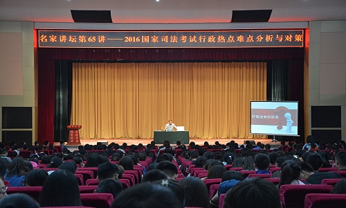 2015年10月20日(星期三),“名家讲坛”第65讲在学术报告厅举行,国家司法考试资深培训名师,对外经济贸易大学法学博士徐金桂老师作了题为“2016年国家司法考试行政法热点难点分析与对策”的专题学术讲座。全院学生共八百余人参加了讲座。
