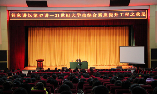 014年10月15日,陇桥学院“名家讲坛”第四十七讲在学术报告厅举行,兰州商学院工商管理学院教授关辉国应邀为我院师生作了题为《21世纪大学生综合素质提升工程之我见》的专题讲座。讲座由科研与学术交流处处长丁敏主持,全院师生共计八百余人参加了本次讲座。