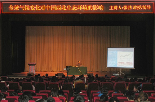 张勃教授以“全球气候变化对中国西北生态环境的影响”为主题,通过全球气候变化概况、近年来全球气候变化产生的重大事件、近年来全球气候变化的趋势及预测、全球气候变化在西北地区的表现、对西北生态环境的影响、我们如何正确看待这一影响等几个板块对主题做了深入浅出的讲解。他将抽象化的自然地理知识用通俗化的语言表达给现场听众,不仅开阔了同学们的视野,而且增加了他们追求科学的兴趣,得到了同学们的广泛好评。张勃教授追求真理、崇尚科学,对待学术精益求精、一丝不苟的精神也感染了现场的每一位同学。