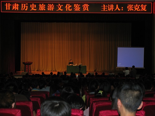 5月29日,我省知名学者、史学家,甘肃省地方史志办公室副主任、巡视员、省文史馆馆员张克复教授应邀来我院做学术交流。随后张克复教授在学术报告厅作了“甘肃历史旅游文化鉴赏”的专题讲座,这也是我院“名家讲坛”第二十场讲座,我院师生共800多人聆听了本次讲座。本次学术交流活动由科研与学术交流处主办,工商管理系承办。