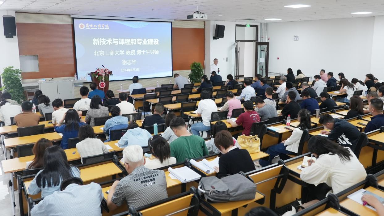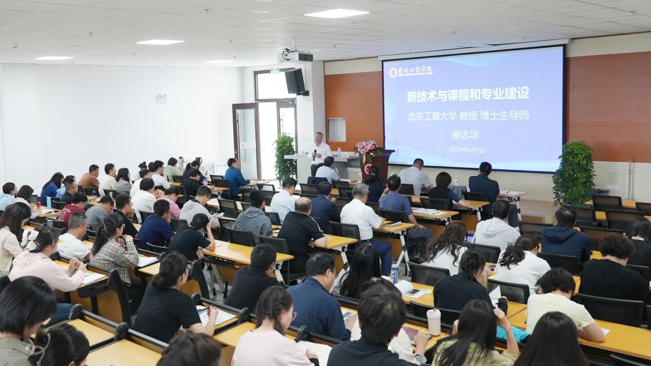 6月3日下午, 我校首届学术活动月系列学术报告会邀请北京工商大学博士生导师谢志华教授作“新技术与课程和专业建设”为主题的学术报告。我校常务副校长马义哈、副校长张春庆、相关职能部门人员及教师共计100余人参加了此次报告会。报告会由副校长李培根教授主持。
