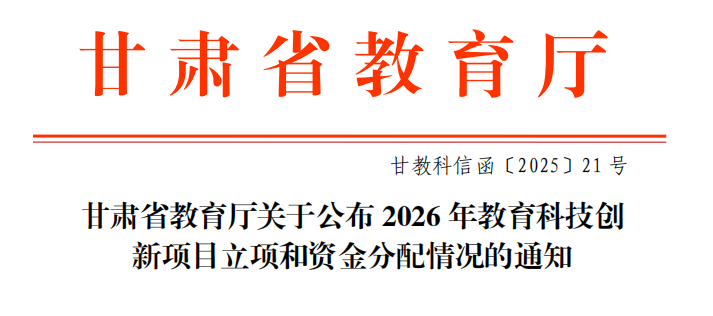 近日,根据《甘肃省教育厅关于公布2026年教育科技创新项目立项和资金分配情况的通知》(甘教科信函〔2025〕21 号),我校共有10个项目成功获批“2025年甘肃省高校教师创新基金项目”。