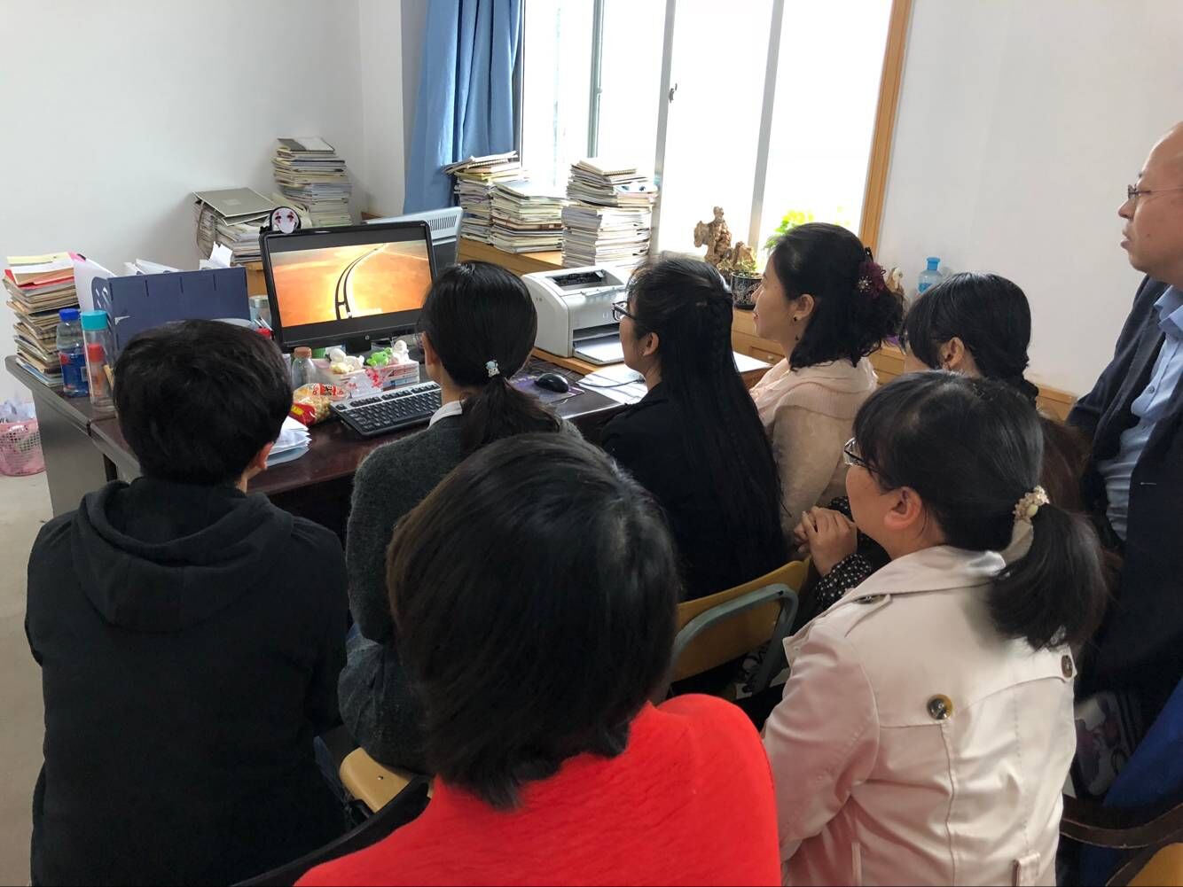 2018年5月10上午9:00,我党支部9名党员老师在支部书记何荣老师的组织下,在帷运楼516办公室集体观看了由央视、中影联合出品的电影纪录片《厉害了,我的国》。