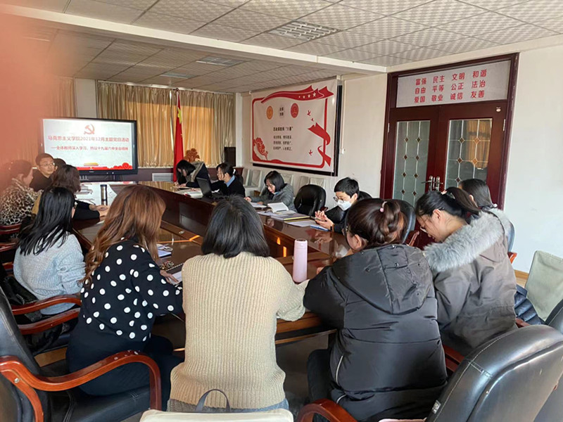 12月9日下午,马克思主义学院在行政楼五楼会议室开展了“学习贯彻十九届六中全会精神主题党日活动”,马克思主义学院全体教师参加,会议由副院长谢晖主持。