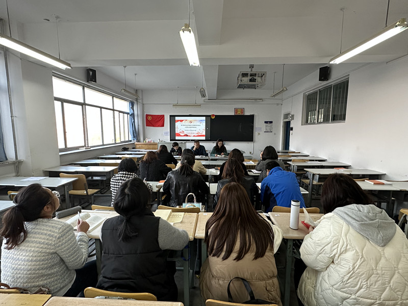 党支部副书记张志霞传达了学校党委对报送主题教育推进情况相关材料的要求,并带领大家学习了以自我革命精神推进全面从严治党的论述,引导党员教师养成读原著学原文悟原理的习惯,提高自学质量,通过原原本本学、融会贯通学、联系实际学,切实把习近平新时代中国特色社会主义思想、二十大精神转化为强大的精神动力。