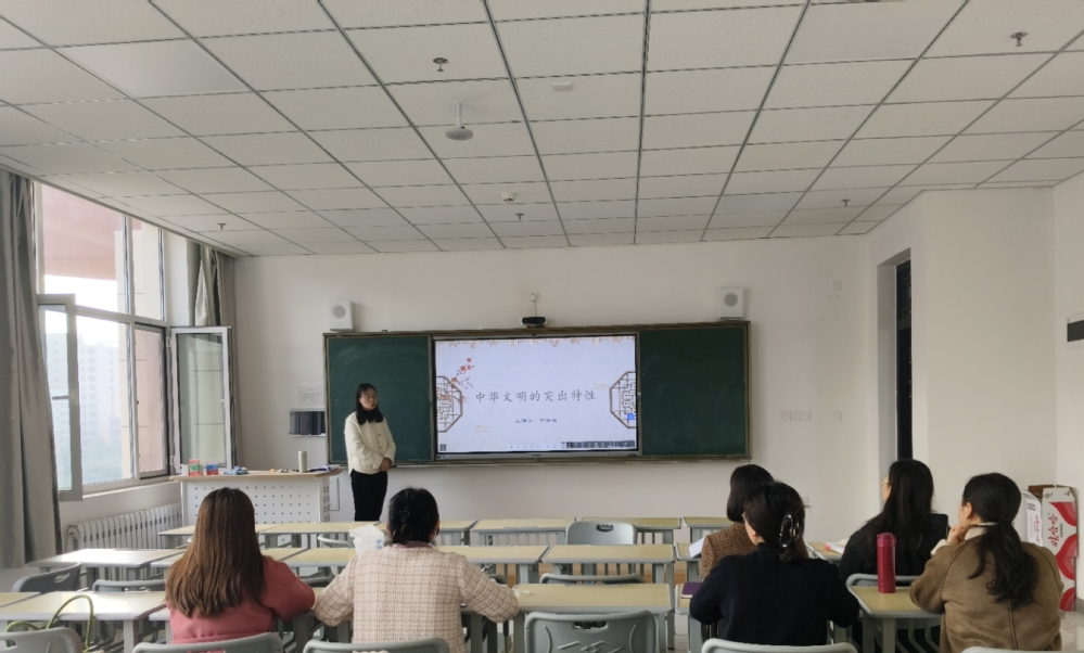 活动中对郭换君老师申报的铸牢中国民族共同体意识精品专题课进行了磨课。郭老师选取《中华民族共同体概论》课程中的中华文明的突出特性进行了40分钟的教学展示。通过大量的案例、数据、图表对中华文明突出的连续性、创新性、包容性、统一性、和平性五个特性进行详细深入的阐述。教研室其他教师认真聆听,仔细记录,并在课后进行了深入的交流和讨论,从课件制作、标题凝练、内容逻辑、与学生互动环节等方面提出了改进意见和建议。
