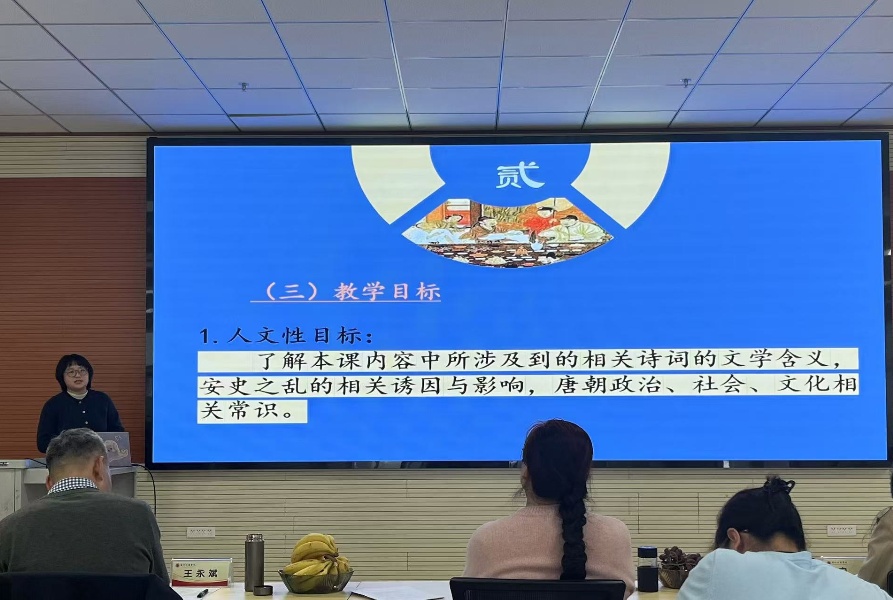 教研室团队主讲人程烜以《秋兴八首·其一》为课程创新的典型实例,围绕以学生为中心的教学原则,从教学内容介绍、教学设计思路、创新实践、教学展示、特点与效果等方面,结合详细充实的内容讲解、优美清晰的课件说明,展示了大学语文教学关注学生、关照现实、侧重人文之美的课程特点与追求,也展示了教研室教师不段提升教学理念、方法、手段的教学热情。