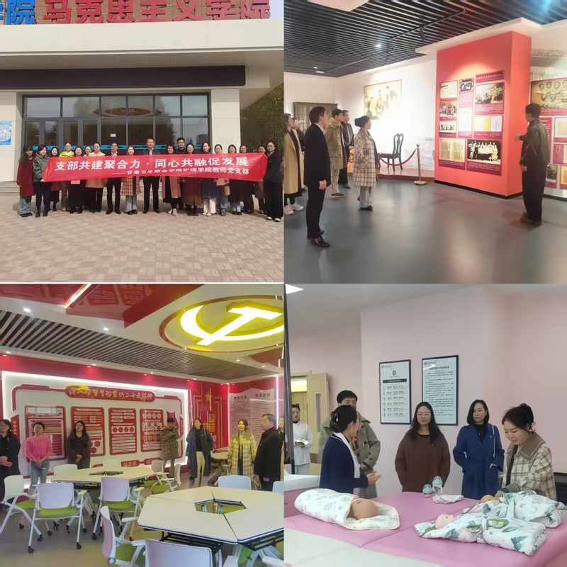党员同志们先后参观了两所学校马克思主义学院红色教育基地、甘肃卫生职业学院护理实训中心。参观过程中,党员同志们始终以学习借鉴的态度,认真记录不同院校红色教育与专业建设的融合亮点。