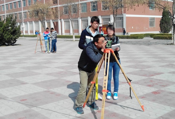 随着我院工程测量实验室的建成,为相关课程的实验教学开展提供了物质保障。图为学生在做水准测量实验。