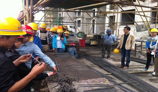在工地实践教学活动中,通过对工程现场的文明化管理:包括现场七牌一图、消防器材、办公库房、材料堆放、设备位置等方面的了解,让学生懂得工程施工活动中“管理”的重要性。