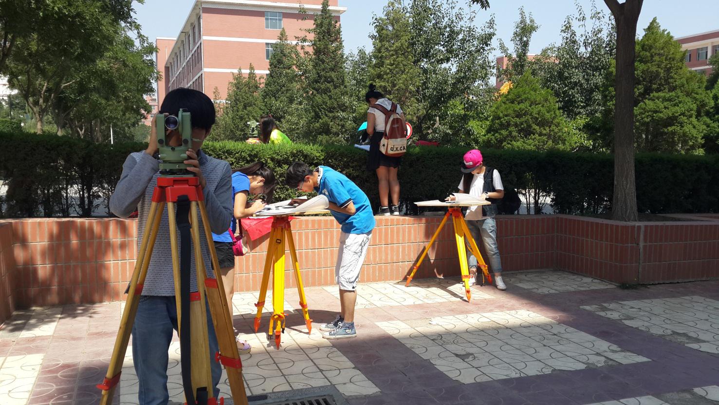 图二:学生在校园进行地形图测量