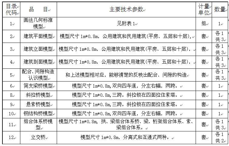 四、实验室主要设备项目技术参数表(建筑模型设备)