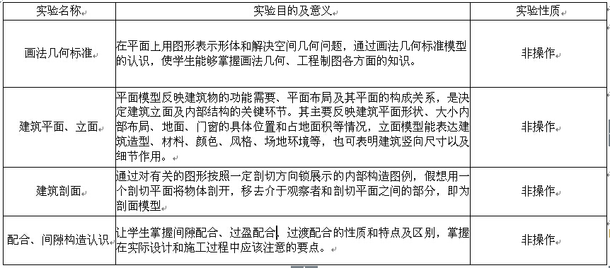 建筑模型实验室主要培养学生对建筑构筑物的直观认识,包括平面图、立面图、剖面图。从而巩固所学工程制图课程,并为专业课程的学习奠定基础,而通过直观认识使得学生在创新精神、综合能力、实践操作能力等各方面有所提高,对土木工程相关专业来讲,模型实验室起着不可替代的作用。通过对建筑模型的识读,学生可以感性认识到各种建筑结构形态,空间投影,结构组合等制图规律,增加学生的空间思维能力和识读施工图的能力。