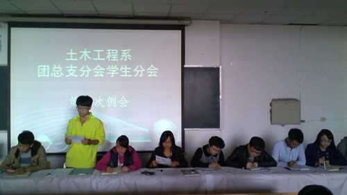 1023日,土木工程系在善问楼315教室召开了20142015学年第一次团学干部大会。我系教学副主任詹春副教授、团总支书记陈小丽老师、党政秘书祁海云老师、辅导员张希伟老师、团总支学生分会全体学生干部、各班班长以及团支部书记参加了大会。会议由陈小丽老师主持。