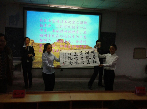 下午17:00活动正式开始,土木工程系的学生将自己精心制作的作品以及艺术设计系学生捐献的作品进行爱心义卖,义卖现场气氛非常活跃,在场的老师和同学们纷纷献出了自己的爱心。最后,经过紧张而热烈的义卖,共筹得善款2193元,这些善款已全部购买为适合小学生使用的学习文具,连同各系同学们捐助的衣物已经送到了会宁县吴乡金川希望小学孩子们的手中。