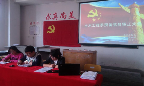 根据学院党委学生党员发展工作相关会议精神和要求,土木工程系党总支学生党支部于5月21日下午16:30在2号教学楼304教室召开了党员转正大会。土木工程系学生党支部书记张希伟、团总支书记陈小丽以及全体学生党员、入党积极分子共计62人参加了大会。会议由党政秘书祁海云同志主持。