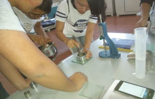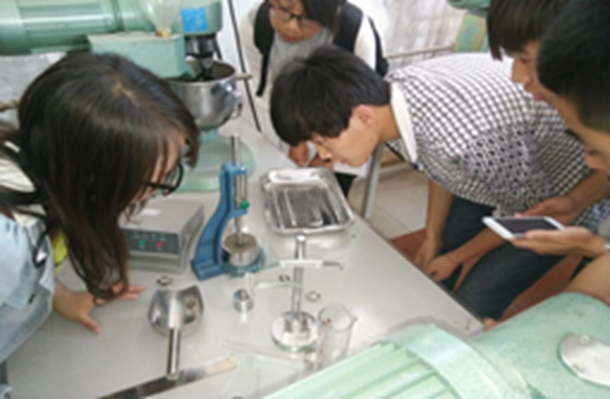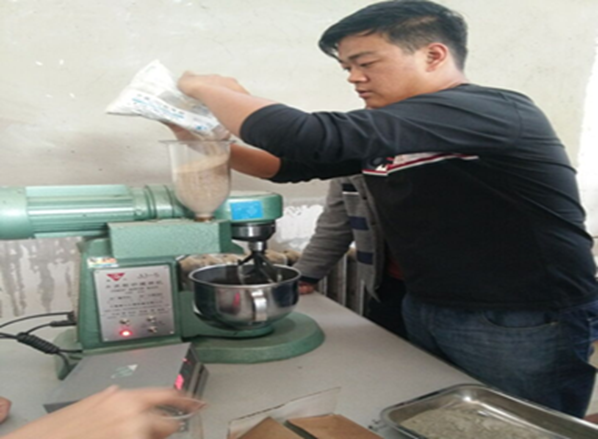 图四:学生在检测水泥标准稠度用水量
