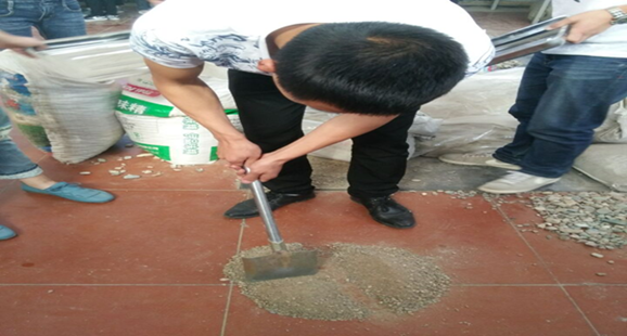 图一:学生在用四分法分细集料