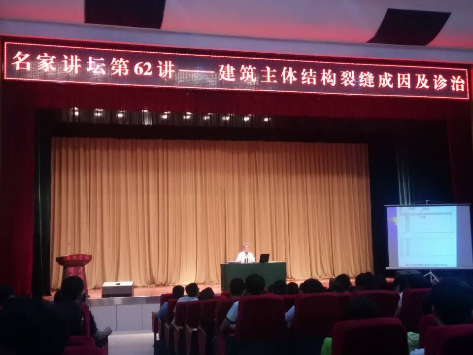 617日下午16:30,学院名家讲坛第62讲——李德荣教授主讲的《建筑主体结构裂缝成因及诊治》讲座在学术报告厅开讲。土木工程系全体师生共计800余人聆听了讲座。