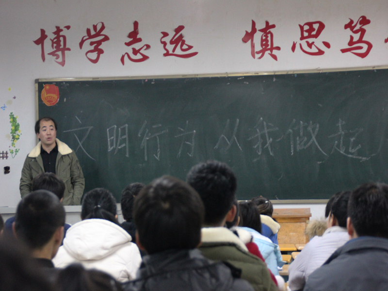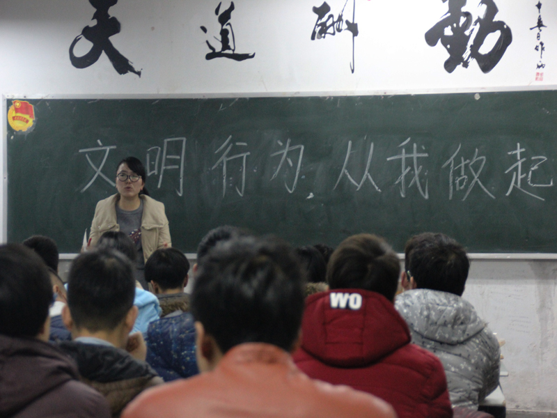 文明行为习惯是大学生道德素质的重要体现,也是大学生日常行为习惯养成教育成果的外在表现。为了深入贯彻兰州市创建全国文明城市战略的总体安排和部署,进一步强化大学生文明行为养成,做到校内校外行为一致,彰显当代大学生的良好精神面貌和高尚素质,根据学院相关会议精神和要求,土木工程系于12月27日晚自习组织各班召开了“文明行为,从我做起”主题教育班会。