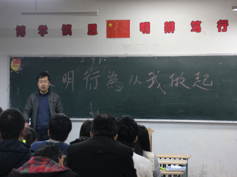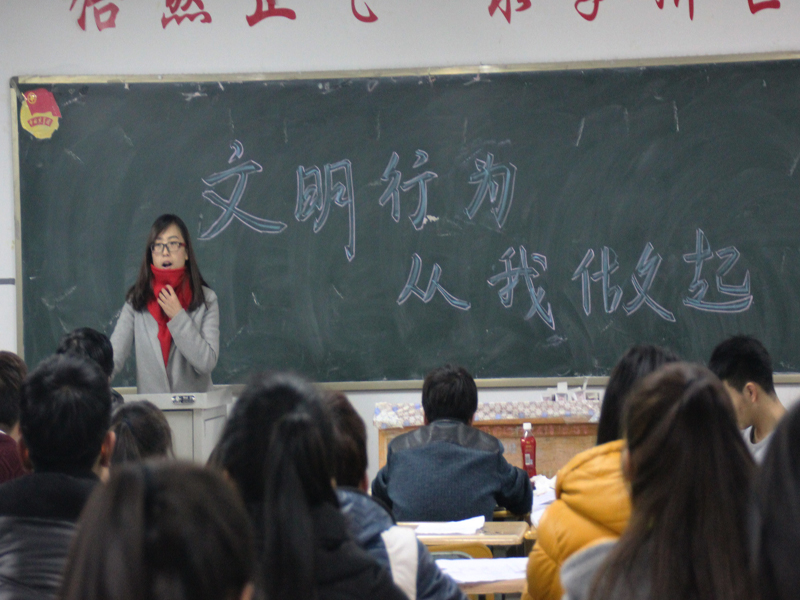 文明行为习惯是大学生道德素质的重要体现,也是大学生日常行为习惯养成教育成果的外在表现。为了深入贯彻兰州市创建全国文明城市战略的总体安排和部署,进一步强化大学生文明行为养成,做到校内校外行为一致,彰显当代大学生的良好精神面貌和高尚素质,根据学院相关会议精神和要求,土木工程系于12月27日晚自习组织各班召开了“文明行为,从我做起”主题教育班会。