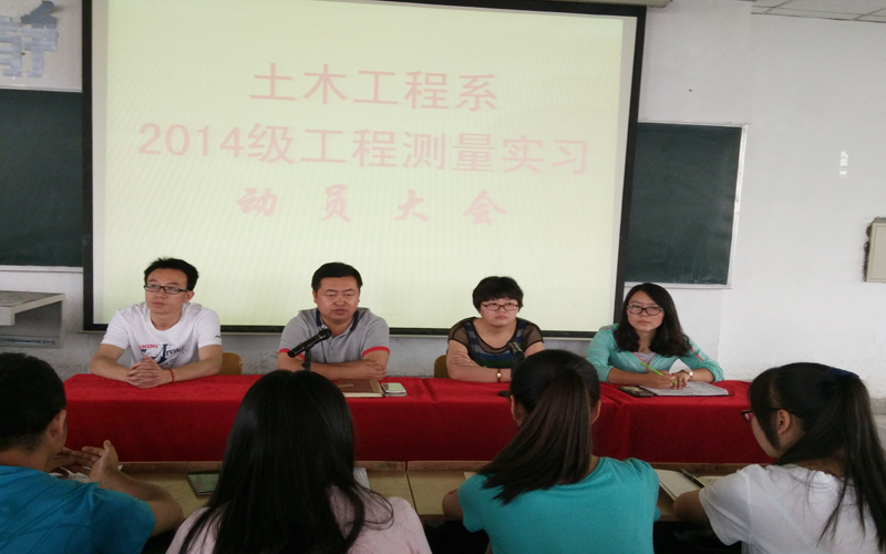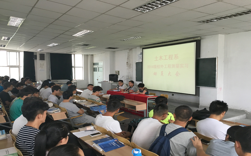 6月20日上午9:00,土木工程系组织2014级各班(风景园林班除外)召开工程测量实习动员大会。土木工程系党总支书记尚飞、教学副主任詹春出席了动员大会,各教研室负责同志、实习带队教师以及2014级学生参加了会议。