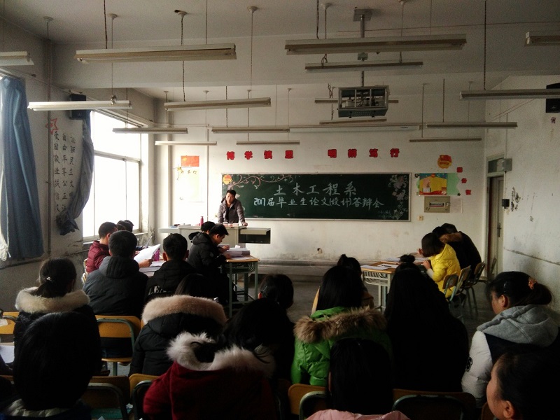 根据本学期的教学计划安排以及“3+1”人才培养方案的试行,13级毕业生的毕业设计答辩工作安排在12月24日全天进行,本次答辩分为两个组进行,每组参与答辩的指导老师六人,负责不同专业方向的毕业设计文件的审核和答辩提问,本届毕业生毕业设计的任务量达到了92%,撰写论文占到8%,主要内容涉及到结构设计、施工组织设计,概预算书的编制等,充分体现了工科专业的教学特色,同学们在答辩中应用所学知识积极回答答辩组提出的专业问题,并联系工程实习的经历,展示了工程实习实践的重要性。