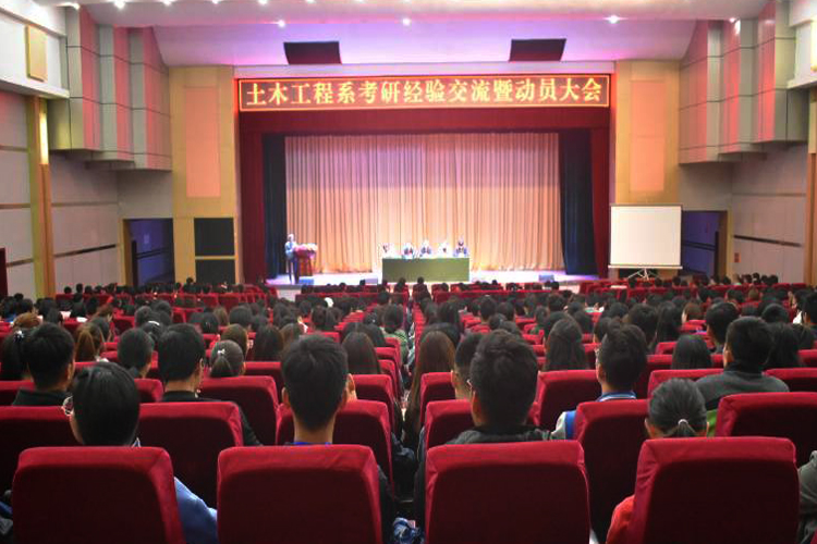 为了及时总结考研经验,分享考研历程,培养考研意识,激发同学们的考研激情,土木工程系于4月23日晚19:30在学术报告厅召开考研经验交流暨动员大会。土木工程系领导班子、全体教职工以及一二三年级全体学生,共计800余人参加了交流动员会。交流动员会由土木工程系主任助理王顺利主持。