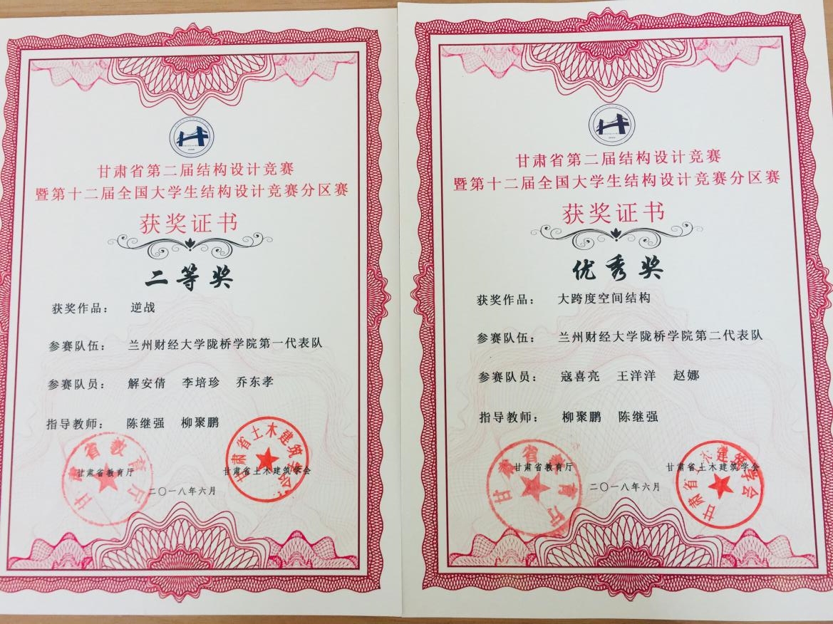 由甘肃省教育厅主办,兰州交通大学承办的甘肃省第二届大学生结构设计竞赛暨第十二届全国大学生结构设计竞赛分区赛于2018年6月1日—6月3日下午在兰州交通大学体育馆举行。由土木工程系陈继强、柳聚鹏两位老师及2015级解安倩、李培珍等6名同学组成2支代表队参加了本届比赛。