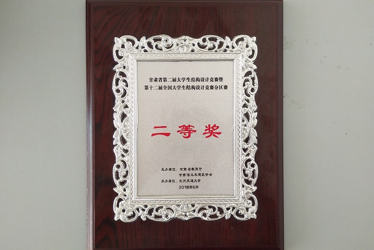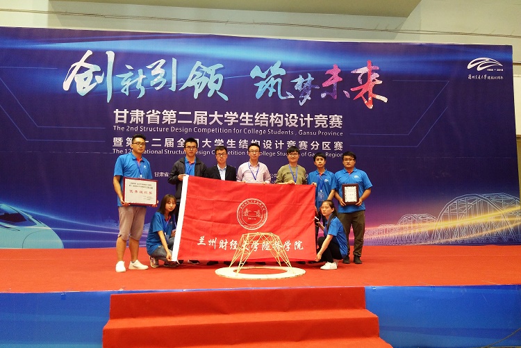 本届大赛以“承受多荷载工况的大跨度空间结构模型设计与制作”为赛题,要求参赛学生用竹材现场设计并制作一个大跨度空间屋盖结构模型。本次大赛共有省内开设土木专业的11所高校的24支队伍参赛。经过激烈比赛和后期专家评审陇桥学院第1代表队的模型《逆战》顺利通过了一级荷载、二级荷载及三级水平移动荷载三个阶段的加载测试,以总重213g,承受荷载7kg的成绩获得大赛二等奖,同时学院获评优秀组织奖。