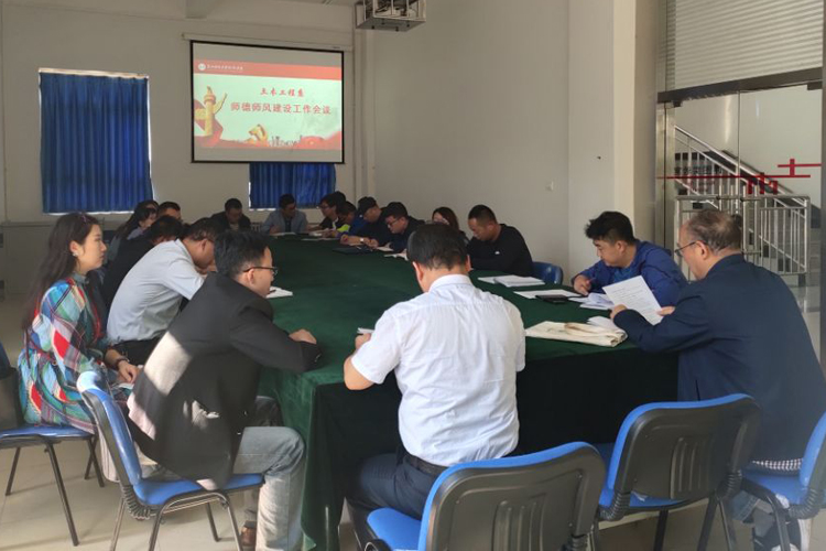 9月26日下午,土木工程系在土木工程实训中心二楼评图室召开师德师风建设工作会议,系领导班子成员和全体教职工参加了会议。会议由土木工程系主任栗宜民教授主持。