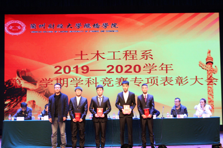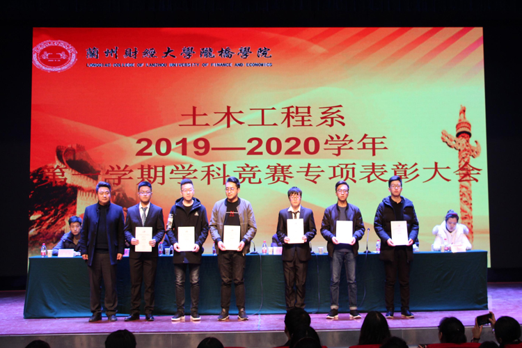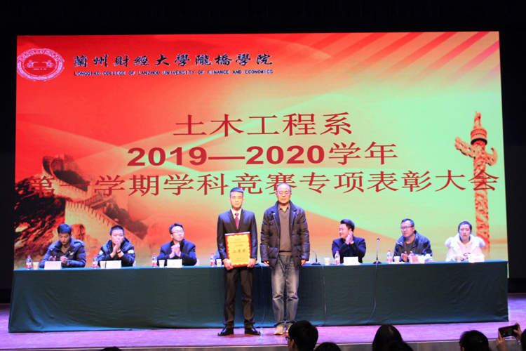 会上,土木工程系副主任胡涛介绍了我系组队参加的由省教育厅等部门主办的甘肃省第二届高等院校工程造价技能竞赛、甘肃省第一届高等院校施工技术应用技能大赛、甘肃省首届大学生“坚朗杯”钢结构技能与知识竞赛、第三届全国中高等院校BIM电子招投标大赛、“中海达杯”第二届甘肃省大学生测绘技能大赛、甘肃省第三届大学生结构设计竞赛暨第十三届全国大学生结构设计竞赛分区赛、第十二届“挑战杯”甘肃省大学生课外学术科技作品竞赛的比赛获奖情况,并宣读了《土木工程系关于表彰在2019—2020学年第一学期省级专业性学科竞赛中获奖学生的决定》的文件。