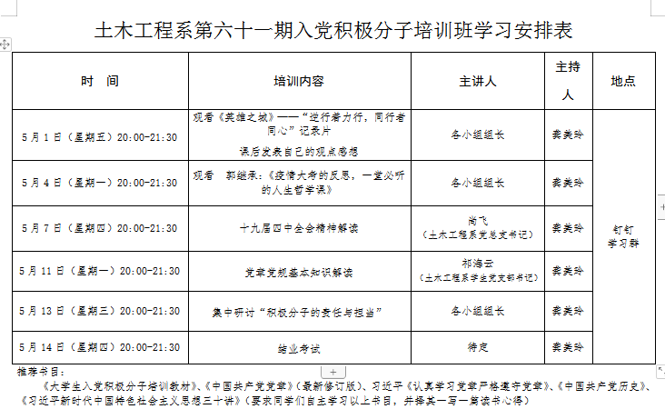 为贯彻落实学院党委《关于做好2020上半年推荐入党积极分子培训工作的通知》的文件精神,根据《中国共产党章程》和《中国共产党发展党员工作细则》,土木工程系党总支高度重视,认真组织选拔入党积极分子,并精心策划开展本期入党积极分子线上培训工作。