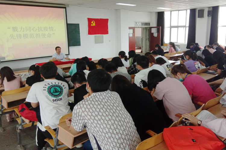 为了进一步加强对学生党员的思想教育,强化党员责任意识,充分发挥学生党员的先锋模范作用,按照土木工程系党总支工作计划,系党总支于6月4日下午组织全体学生党员在2号教学楼315教室召开了“勠力同心抗疫情,先锋模范担使命”主题教育大会。土木工程系党总支书记尚飞出席会议并对全体党员做了学习辅导报告。