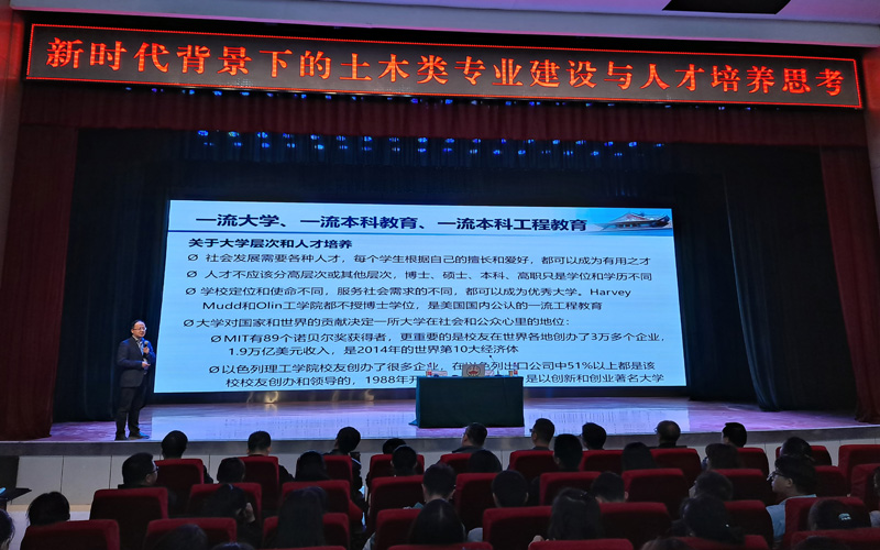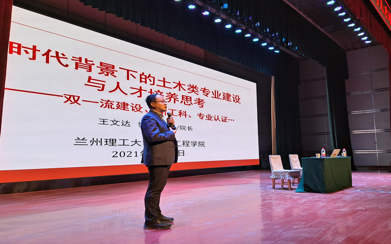 为进一步深化对新时代新工科建设的认识,加强土木类专业的建设,争取早日实现“双一流建设”目标,土木工程学院于3月26日下午在学术报告厅顺利举办了土木类专业建设专题学术讲座。兰州理工大学土木工程学院院长王文达教授应邀为我院师生做了题为《新时代背景下土木类专业建设与人才培养思考》的学术讲座。土木工程学院全体教师和700余名学生代表参加并聆听了讲座。学术讲座由土木工程学院教学总监栗宜民教授主持。