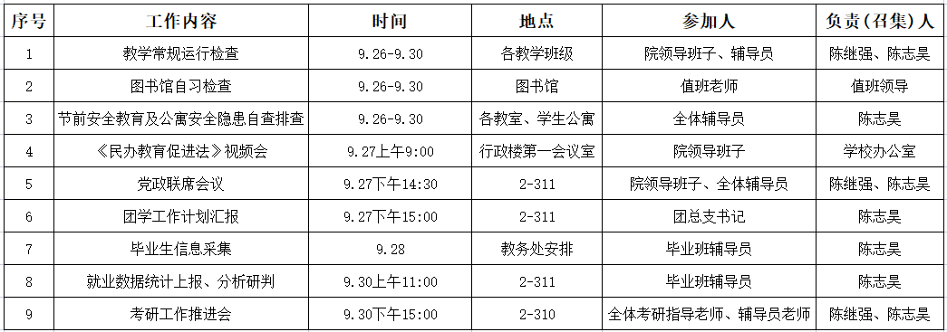 土木工程学院2021-2022学年第1学期第4周工作安排