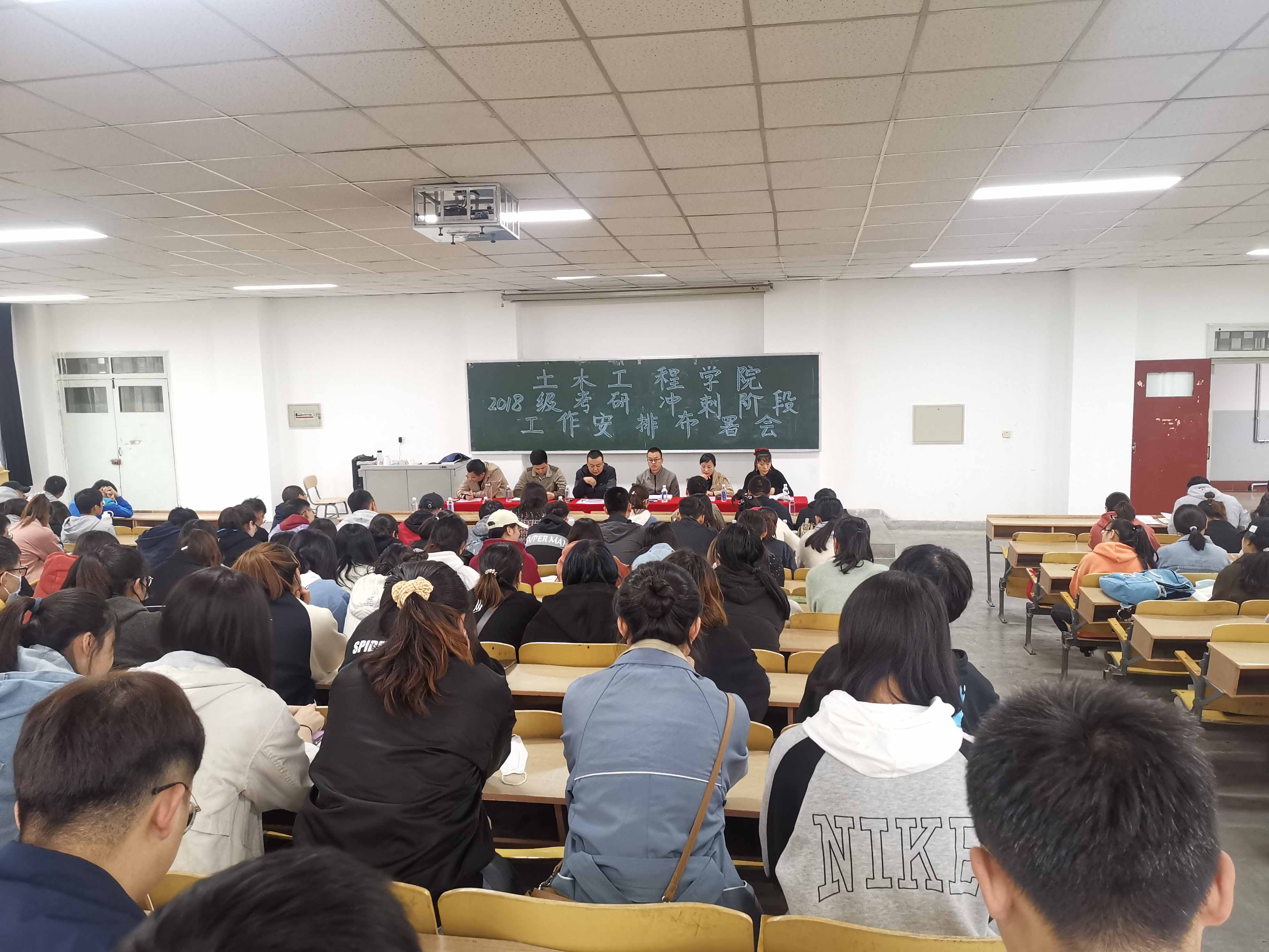 随着考研进入冲刺阶段,为及时回应学生关切,有效推进考研率翻倍目标冲刺,10月9日下午15:20,土木工程学院在2号楼315教室召开了2018级考研冲刺阶段工作安排部署会,学院院长陈继强、党总支副书记陈志昊、院长助理刘长东、学职处杨静老师、全体考研指导老师及考研学生参加了会议,会议由党总支副书记陈志昊主持。
