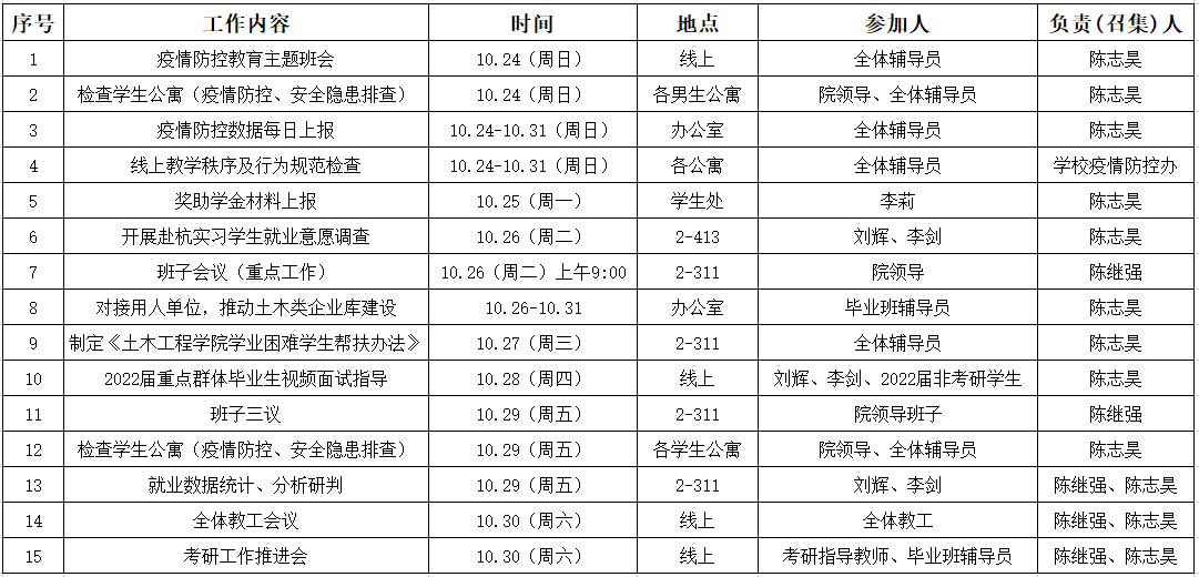 土木工程学院2021-2022学年第1学期第8周工作安排