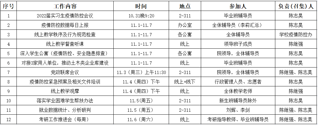 土木工程学院2021-2022学年第1学期第9周工作安排