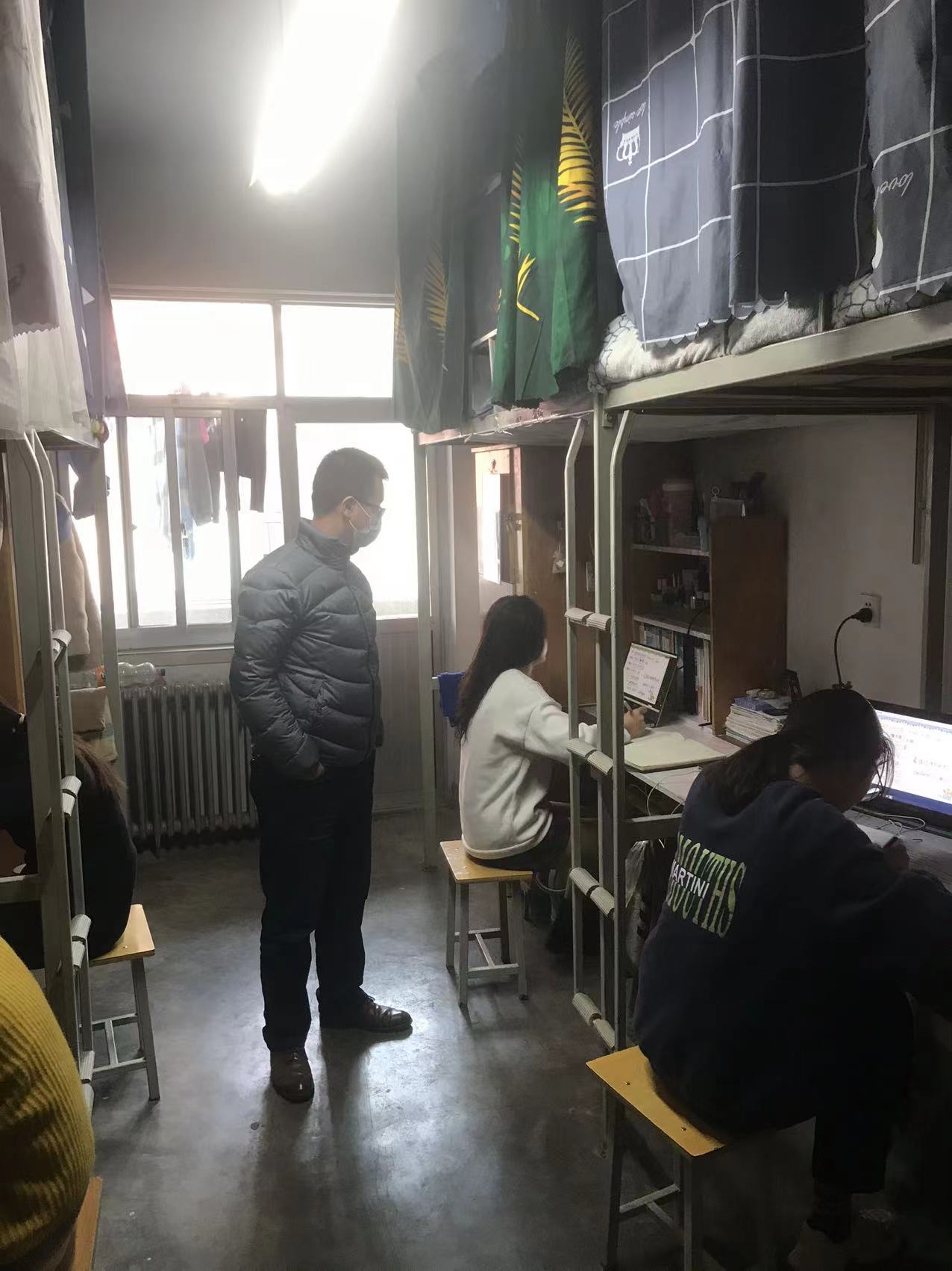 根据学校疫情防控工作的整体安排和教学规范化要求,为了解同学们的困难和需求,教育和引导同学们重视并主动高效参与到线上学习中来,保证疫情防控期间线上教学有序运行,自校园封闭管理以来,学院领导及辅导员老师多次深入公寓检查学生的学习秩序,了解学习现状,鼓励和督促同学们认真参与好线上教学。