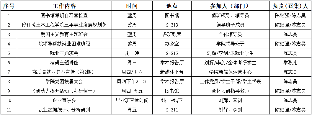 土木工程学院2021-2022学年第1学期第15周工作安排